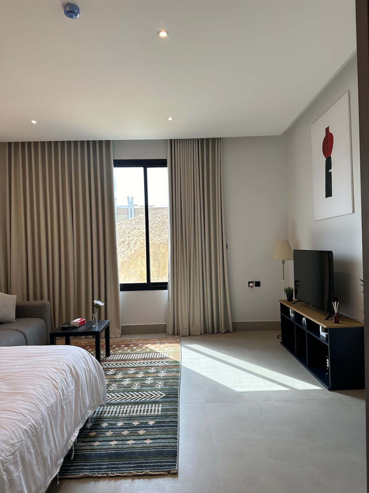 Nýtískulegt stúdíó með aðskildum inngangi í Hittin-hverfinu nálægt Boulevard og öllum viðburðunum á bak við torgið með nútímalegri hönnun með þægilegum litum og friðsælum húsgögnum ásamt 65 tommu snjallskjá með öllum forritum (Netflix,Watch , OSN)Það er háhraðanet til viðbótar við sérstakt kaffihorn með fylgihlutum með ísskáp, hraðsuðukatli og örbylgjuofni. Inni á baðherberginu er einnig sjampó, hárnæring, handklæði og inniskór. Stúdíóið er rólegt, afslappað og persónulegt fyrir þá sem hafa áhuga á kyrrð og þægindum
