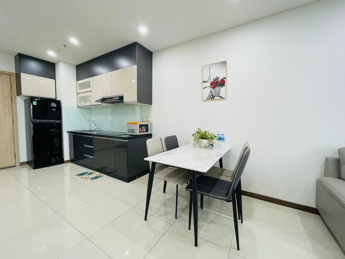 Þú skemmtir þér vel í þessari þægilegu gistiaðstöðu. Frábær íbúð í Ha Do Centrosa Garden - lúxus háklassa eignasamstæða þar sem þú og fjölskylda þín getið verið viss um að njóta friðsælasta og þægilegasta lífsins eftir annasaman vinnudag eða áhugaverða upplifun í Ho Chi Minh-borg. Þetta er íbúð með svölum og frábæru borgarútsýni. Í íbúðinni er full aðstaða sem staðalbúnaður, fullbúið eldhús og eldunaráhöld.