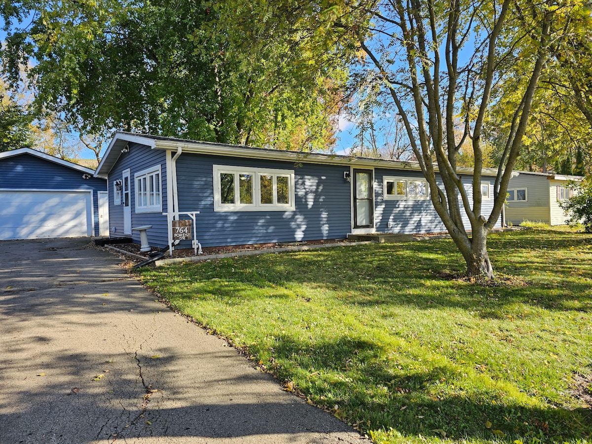 SPRING FLASH KYNNING: Bókaðu þér gistingu fyrir 30. mars og fáðu ÓKEYPIS síðbúna útritun! Slakaðu aðeins lengur á – við erum að flýta okkur að vetri til en þú getur gist! Þessu sértilboði lýkur fljótlega. Bókaðu núna fyrir gistingu hvenær sem er árið 2025 til að fá þennan kaupauka. Heillandi bóndabær við Rock River í Watertown, Wisconsin. Arkitektúr gamla heimsins með nútímalegu eldhúsi og baðherbergi. Stofa og borðstofa, tvö svefnherbergi og ris, verönd með skimun og afslappandi verönd.