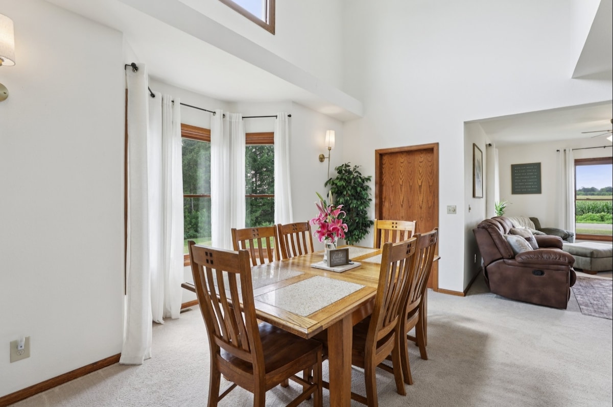Slakaðu á í þessu fallega bóndabýli sem býður upp á fullkomna blöndu af sveitalegum sjarma og nútímaþægindum. Þetta friðsæla afdrep er með rúmgóðum innréttingum, stílhreinum áferðum og nægri dagsbirtu. Slakaðu á í stóra bakgarðinum við notalega eldstæðið, njóttu máltíða í fullbúnu eldhúsinu eða slappaðu af í stóru opnu stofunni. Miðsvæðis í Columbus, BeaverDam, Oshkosh, Watertown, Waterloo og í 45 mínútna fjarlægð frá Madison og Milwaukee. Göngu- og hjólastígar á staðnum!
