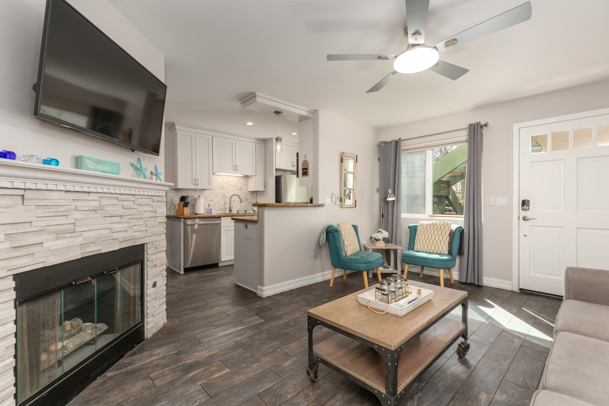 Nýlega uppgerð lúxusíbúð með einu svefnherbergi staðsett 2 húsaröðum frá ströndinni! Veitingastaðir, pöbbar og Ocean Beach / Dog Beach eru innan tveggja húsaraða radíuss. Þessi eign er með opið gólfefni með vel búnu eldhúsi, hágæða áferðum/tækjum, loftræstingu, staflanlegri þvottavél/þurrkara (innan íbúðar), 4K sjónvarpi, þráðlausu neti/háhraðaneti (att trefjum), svefnsófa í fullri stærð og tilteknu bílastæði.
