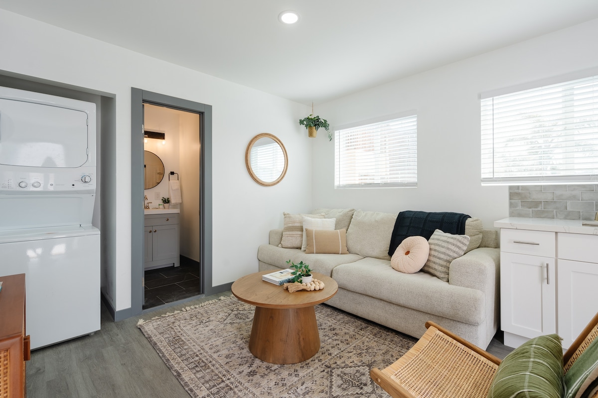 Slappaðu af með stæl á þessu fallega, endurbyggða casita á neðri hæðinni þar sem kyrrðin mætir strandlífinu án nágranna á efri hæðinni. Þetta notalega afdrep býður upp á fullkomið frí fyrir þig og gæludýrin þín. Njóttu næðis í afgirtum garði, borðstofu utandyra og þægilegu gasgrilli. Aðeins nokkrum mínútum frá Dog Beach, þar sem ungarnir geta skvett sér og leikið sér, og Dusty Rhodes Dog Park. Kynnstu Ocean Beach samfélaginu sem er fullt af fjölbreyttum verslunum, bragðgóðum matsölustöðum og mögnuðu sólsetri!