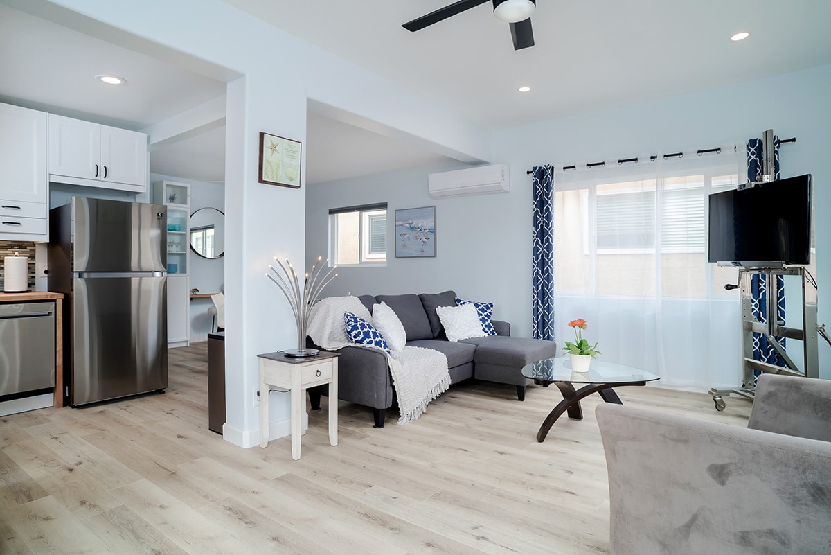 Modern Pacific Beach 1 svefnherbergja íbúð með loftkælingu.