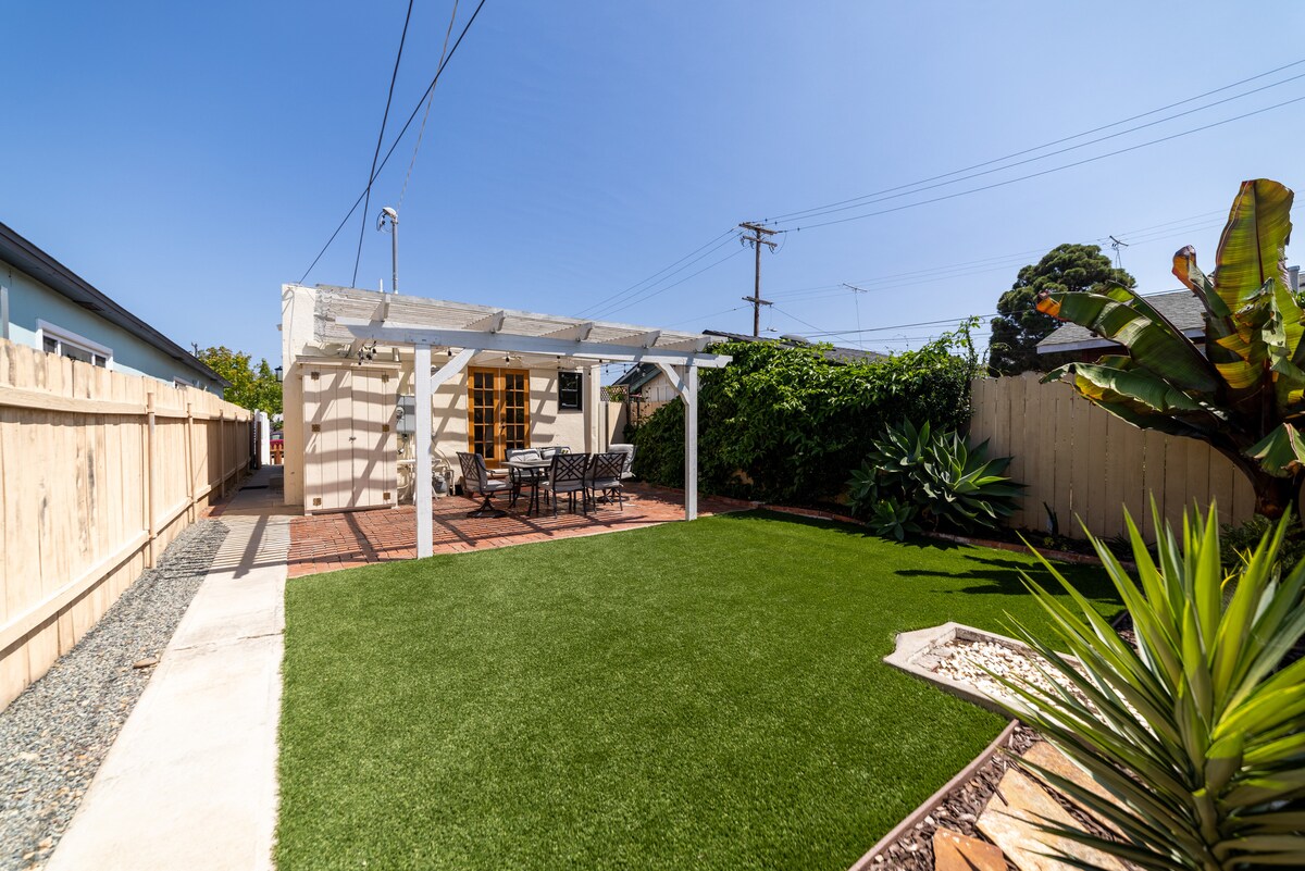 Verið velkomin í Sasha's Bungalow, fullkomna fríið þitt við Ocean Beach! Þetta 2ja svefnherbergja afdrep er steinsnar frá Newport Ave, aðeins einni húsaröð frá sjónum., Voltaire St., og líflegar verslanir og veitingastaðir OB. Slakaðu á í einkagarðinum með eldstæði, grilli og notalegum sætum eða sötraðu kaffi á veröndinni að framan. Inni er fullbúið eldhús, hratt þráðlaust net, streymi og strandbúnaður. Það besta af öllu er að við erum gæludýravæn - allt að 2 gæludýr ($ 45/gæludýragjald) til að taka þátt í strandævintýrinu þínu!