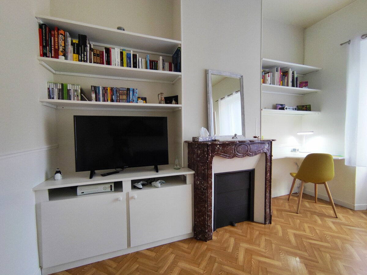 Profitez d'un logement élégant et chaleureux situé dans une petite rue piétonne en plein coeur de Troyes avec sa mini cour intérieure. Cet appartement triplex typique des maisons à colombage a été entièrement rénové (Ateliers VALENTIN) et c'est avec passion que je l'ai complètement aménagé et décoré. Parking à proximité, un ticket offert lors de votre séjour. A visiter la cathédrale Saint-Pierre et Saint-Paul, les maisons à pan de bois, La médiathèque, La maison de l'outil etc...