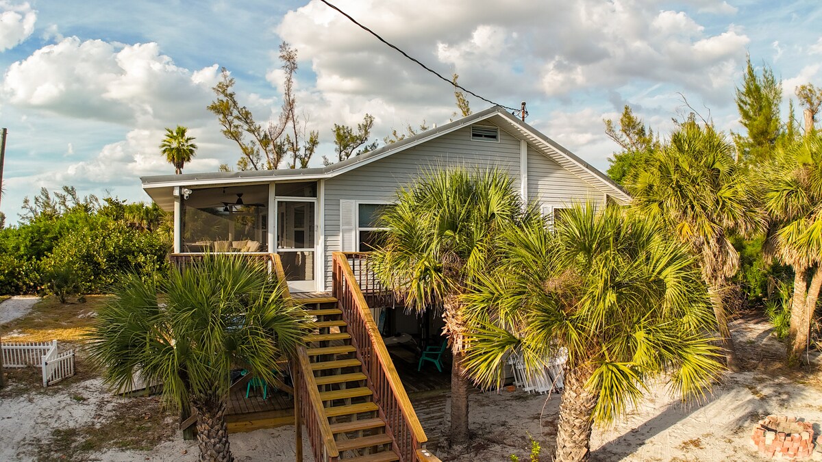 Verið velkomin á afskekktasta staðinn á Little Gasparilla Island! Beach Cottage eignin okkar er við ströndina með náttúrulegu umhverfi: þjóðgarði, mangrove-lón og Mexíkóflóa. Hér er útsýni að framan yfir vatnið og fallegt sólsetur á eyjunni allt árið um kring. Þú færð bátapláss á einkabryggjunni okkar og þægindi á borð við kajaka, róðrarbretti, borðstofu við flóann utandyra, kaffibar með ókeypis kaffi og einkagrill svæði, eldstæði og margt fleira!