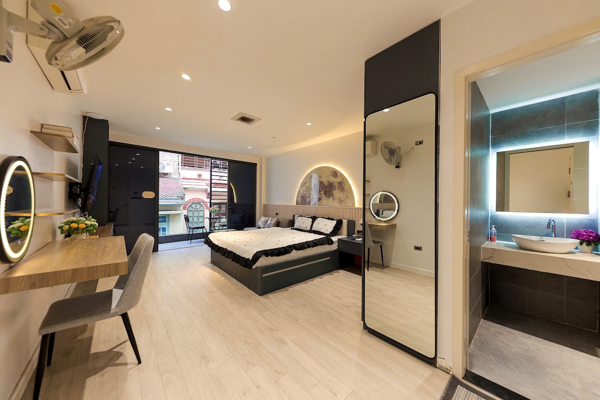 Vaknaðu með mögnuðu útsýni yfir Hoang Cau-vatn í þessari glæsilegu 1BR-íbúð sem staðsett er í miðbæ Dong Da, Hanoi. Njóttu rúmgóðs 80m² heimilis með notalegri stofu, fullbúnu eldhúsi, nútímalegu baðherbergi og einkasvölum með útsýni yfir vatnið. Faggestgjafi með meira en 5ára í hótelstjórn Innifalin þvottaþjónusta (með gistingu í meira en 3 nætur) Hratt þráðlaust net + snjallsjónvarp (Netflix og YouTube) Akstur frá flugvelli í boði ($ 13 á ferð)