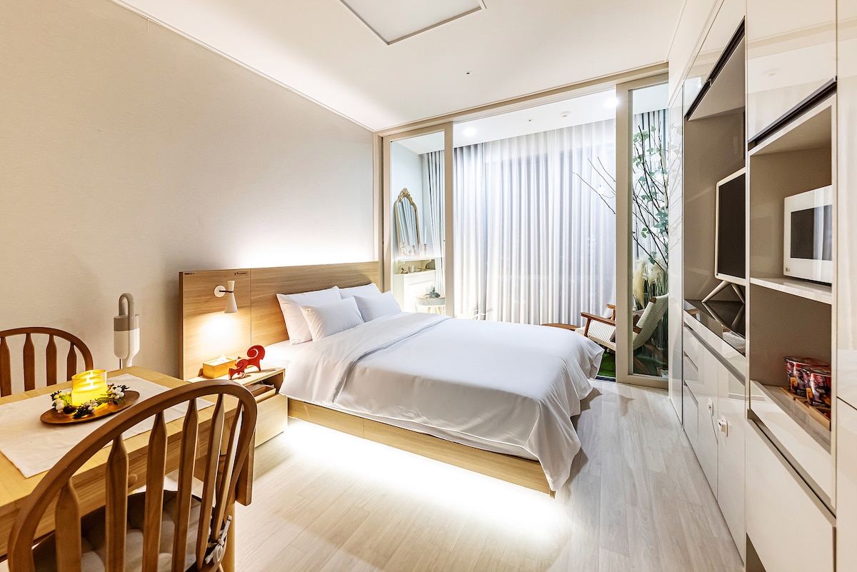 Rými sem ég myndi vilja gista aftur í, fyrir ánægjulega dvöl Við erum að gera okkar besta. 🍱Matsölustaðir, kaffihús, marts, bakarí, sjúkrahús, bókasöfn o.s.frv. Þægileg staðsetning á miðlægum stað með mörgum þægindum. Í nágrenninu er einnig íbúð og íbúðarhverfi svo að það er öruggt.👮 Það er góður lækur til að ganga í innan við 3 mínútna göngufjarlægð. Það er stórborgarstrætóstoppistöð til Seúl (Gangnam, Jamsil) í innan við 🚌3 mínútna göngufjarlægð. Dongtan stöðin (SRT, GTX) og Giheung IC eru í 10 mínútna 🚂akstursfjarlægð. 🚂Everland, Folk Village og Dongtan Lake Park eru í 20 mínútna akstursfjarlægð. IKEA, Lotte Premium Outlets og Lotte Department Store eru í 10 mínútna akstursfjarlægð og það er einnig nálægt Dongtan Techno Valley. Njóttu hversdagsins í Lynn með öllu sem þú þarft. 🏠Lyn stay is registered and operated as a legal home sharing company. □ Opinbert skráningarnúmer Útgáfusvæði: Hwaseong-si, Gyeonggi-do Leyfisnúmer: Nr. 2025-02