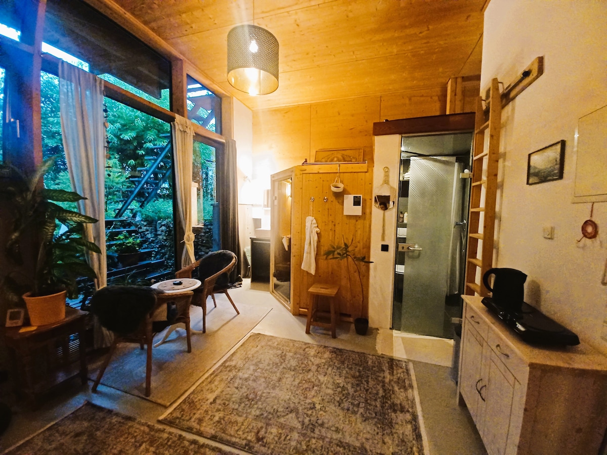 Notalegt loftíbúðarstúdíó með gufubaði og vatnsrúmi