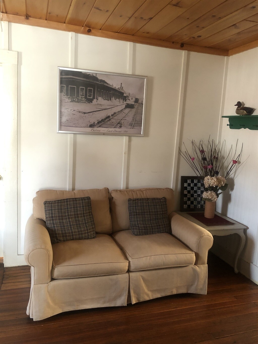 Keep it simple at our peaceful and centrally-located hideaway. This rustic and cozy two-story barn guesthouse with fireplace is located on four acres of a 1768 historic homestead right in Manchester Center. Enjoy the pond and mountain views from the bedroom and living room windows; the guesthouse faces a peaceful meadow and wildlife pond which abuts 70 acres of preserved land with hiking trails, yet it's also just steps from Main Street and all of the dining and shopping of Manchester Village.