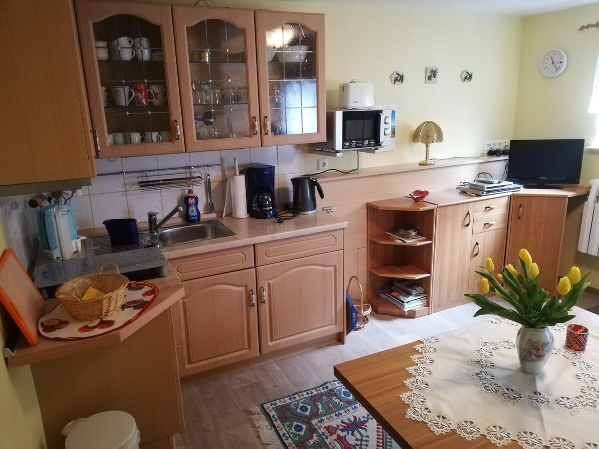 Herzlich willkommen im Herzen Thüringens, in einer herrlichen, naturbelassenen Gegend mit vielen Wandermöglichkeiten, in der Nähe gelegenen Loipen und Skilifts und vielem mehr. Unsere Ferienwohnung liegt in 800m üNN und ca. 14km vom Zentrum Saalfelds entfernt. Wer Ruhe und Zeit zum Ausruhen und Entspannen sucht, ist bei uns genau richtig. Wir empfehlen allen Interessenten und Gästen, das Inserat sorgfältig durchzulesen, um sich auf den Aufenthalt einstellen und ihn genießen zu können.