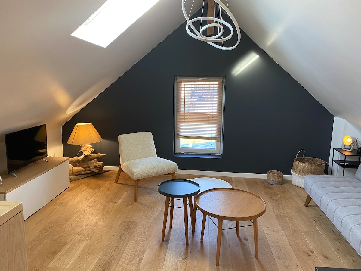 La Lanterne er björt og létt risíbúð (50 m2) sem er staðsett í Normandí, á fallegu landi stórs húss við bakka Signu við Tournedos-sur-Seine (rólegt þorp í fjögurra kílómetra fjarlægð frá Le Vaudreuil/Val-de-Reuil). Húsið hefur verið endurbætt og er fullbúið. Tvö stór herbergi með opnu eldhúsi, svefnherbergi með hjónarúmi king size, sófi, skrifborð. Einkabaðherbergi með sturtu sem hægt er að ganga inn í. Lúxusinnréttingar. Friðsælt og töfrandi umhverfi nálægt náttúrunni.