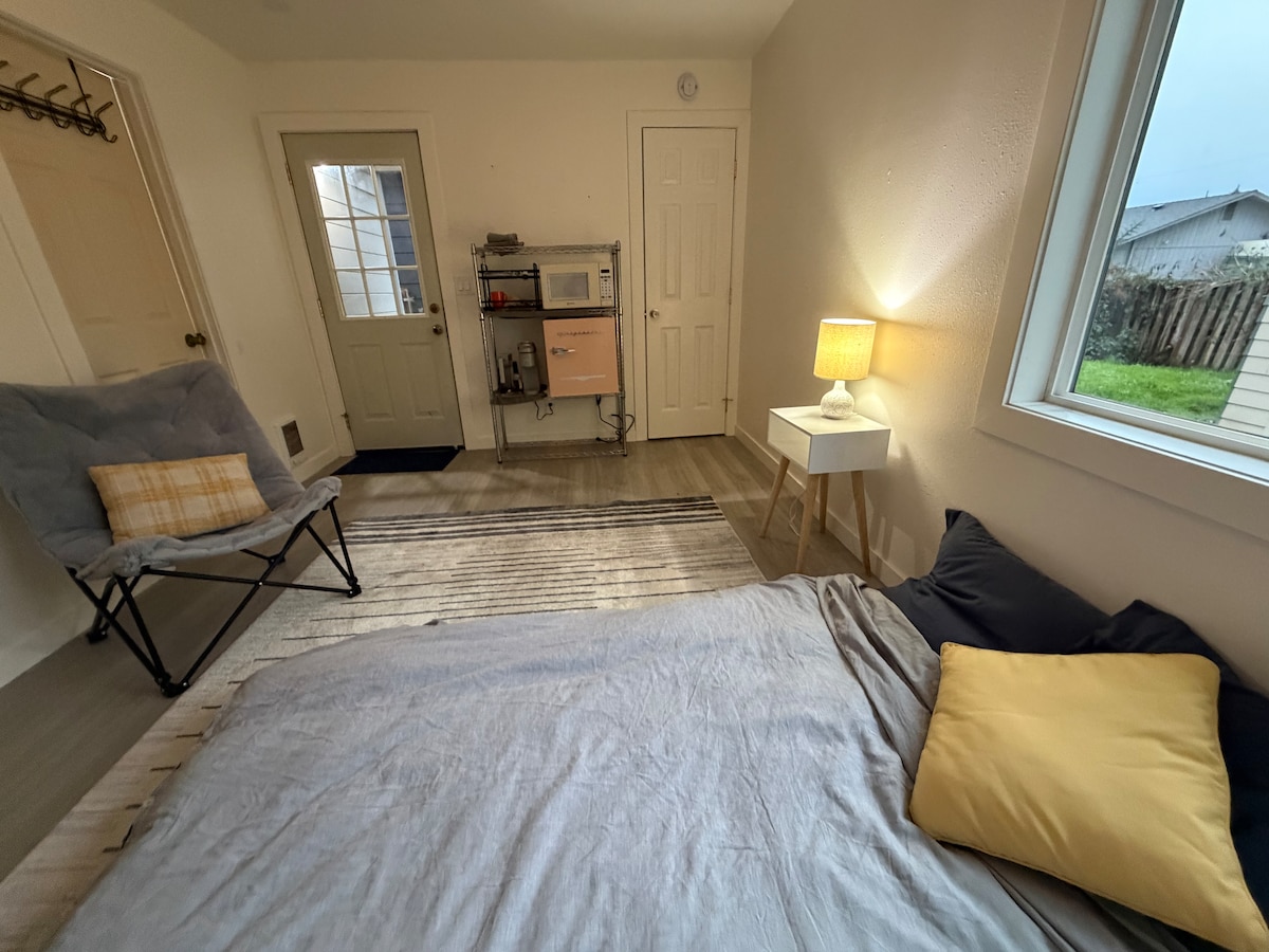 Unwind in the warm and soothing hot tub nestled on the studio’s private, covered deck — the perfect spot to relax, rain or shine. Just steps away, Woahink Lake invites you to swim, lounge on the dock, or launch your kayak, paddleboard, or canoe for unforgettable paddling adventures on its serene waters. Welcome to Pirate's Cove — your cozy, tranquil retreat where comfort meets natural beauty.
