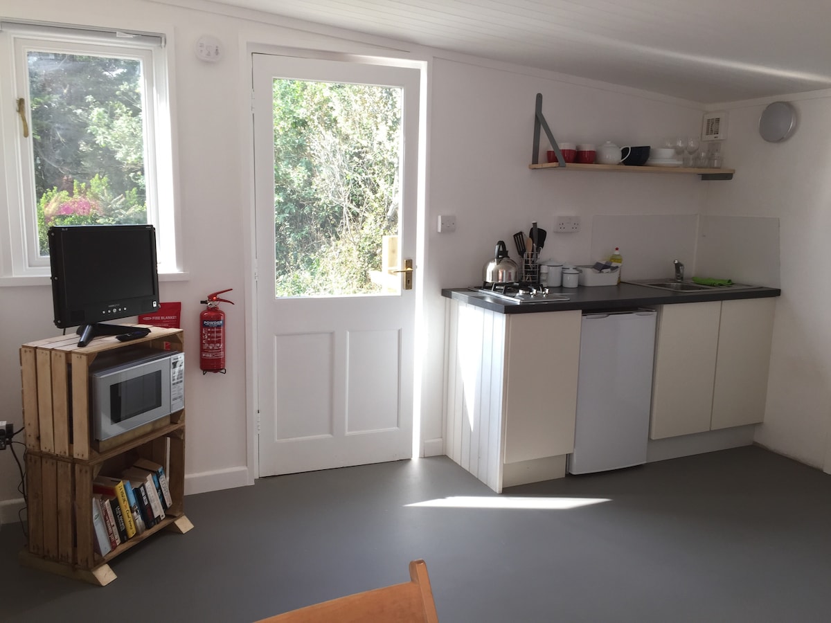 Eitt besta sjávarútsýnið á Cornish orlofsleigumarkaðnum. Ókeypis að leggja við götuna í 150 metra fjarlægð frá eigninni. Bílastæði við eignina í sumarfríi í skólanum. Glæsileg stúdíóíbúð í aðeins 200 metra fjarlægð frá sjónum og ströndinni. Vaknaðu við útsýnið yfir sjóinn frá enda rúmsins. Sjálfsinnritun, 100% sjálfsafgreiðsla með eldhúsi. Einkaaðgangur að íbúð frá Top Road. High spec finish within. Ofurhratt þráðlaust net, SKYTV/íþróttir/kvikmyndahús/Netflix/Prime/Disney+/Discovery+