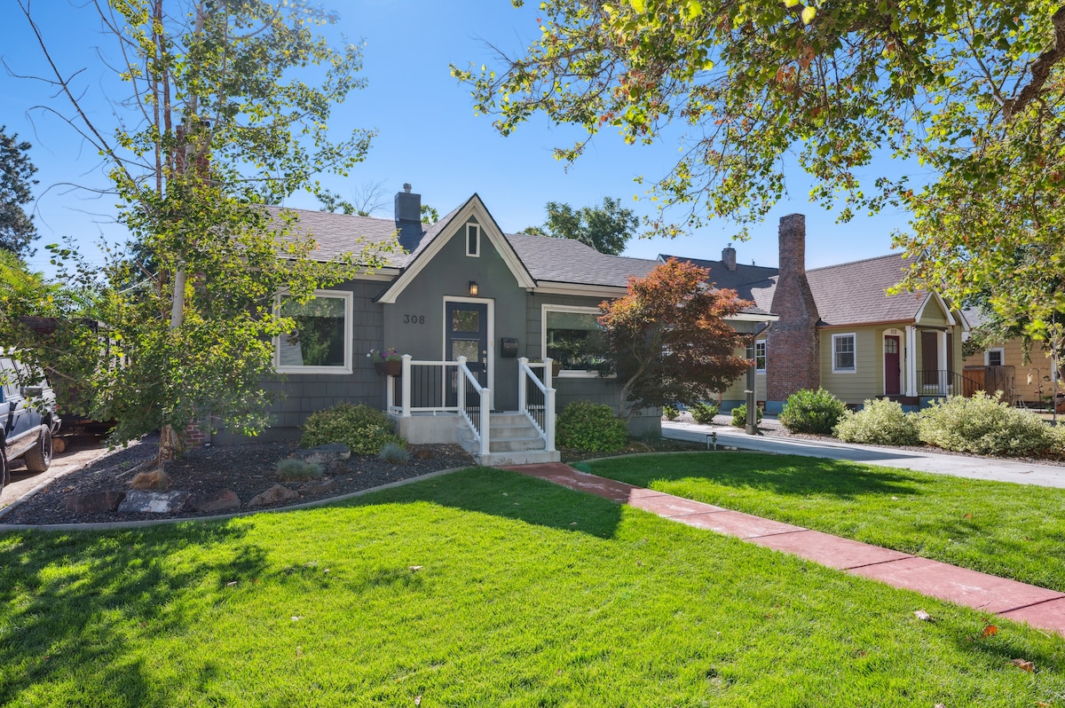 Vandað Hyde Park Craftsman lítið einbýlishús með heitum potti og eldgryfju í eigin bakgarði. Töfrandi gimsteinn lýsir þessu endurreista handverksmanni frá árinu 1912 með glitrandi upprunalegu tréverki og sígildum byggðum. Sælkeraeldhús m/kaffi+ tebar. Slakaðu á í þessu opna hugmyndaheimili í hverfinu N End. Eftirsóknarverðasta staðsetning Boise Hyde Park + 5 mínútur í miðbæinn. Þetta 2 rúm + sólstofa með sérstöku vinnurými er fullbúin húsgögnum með nútímalegum innréttingum og nauðsynjum.