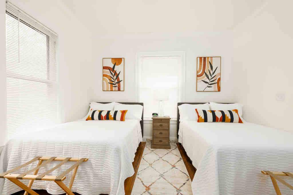 Upplifðu líflega miðborg Greensboro úr tveggja svefnherbergja raðhúsinu okkar. Þú ert fullkomlega staðsett/ur til að skoða borgina fótgangandi og ert steinsnar frá bestu veitingastöðum, verslunum og skemmtistöðum sem svæðið hefur upp á að bjóða. Í raðhúsinu okkar er fullbúið eldhús, háhraða þráðlaust net, þrjú snjallsjónvörp, þvottavél/þurrkari, afgirtur bakgarður, vinnuaðstaða og vönduð dýnur og rúmföt. Hvert svefnherbergi er með sérbaðherbergi fyrir næði og þægindi sem gerir það fullkomið fyrir dvöl þína í hjarta GSO.