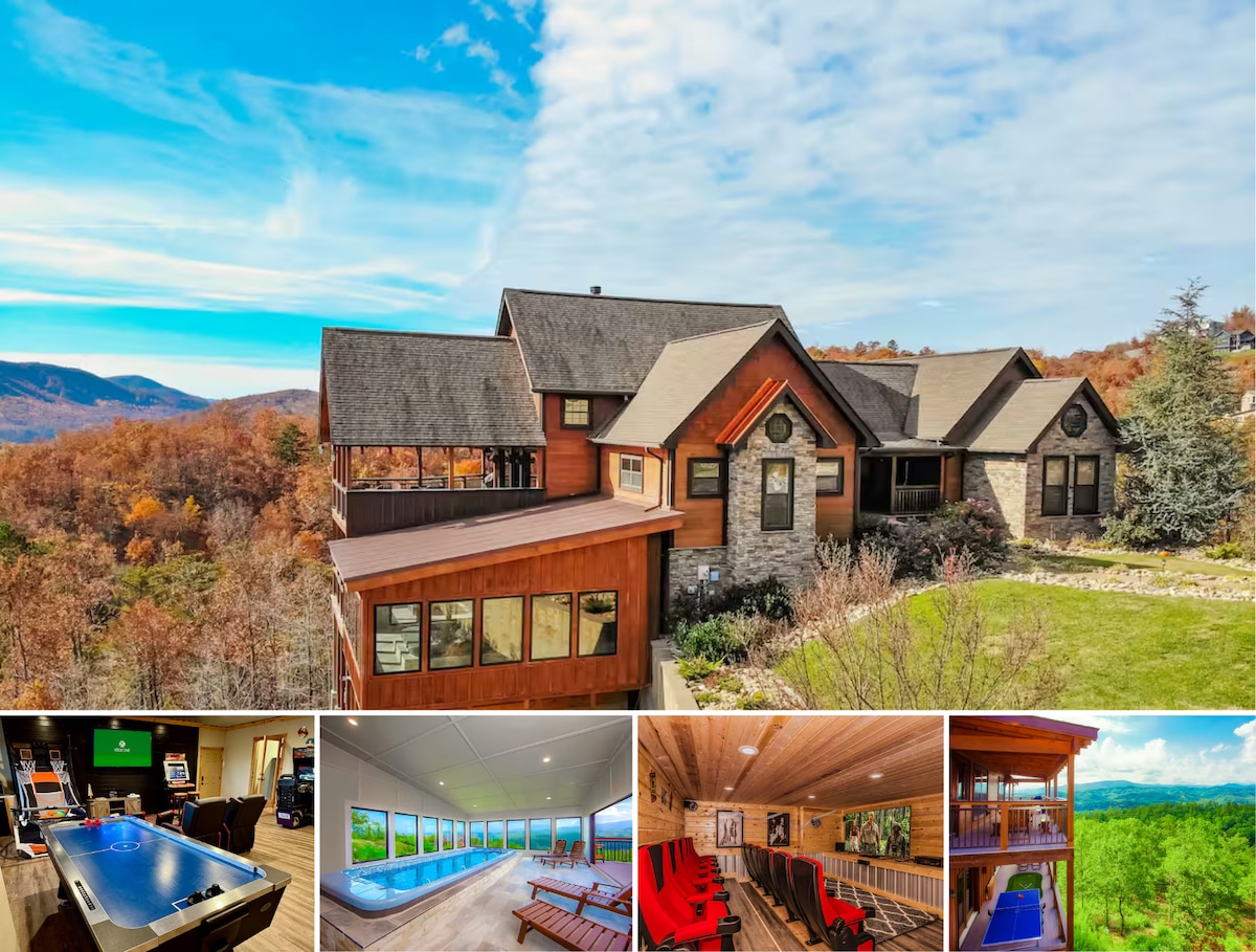 Welcome to the Splash Mountain Lodge nestled in the tranquil and picturesque location in The Smokies, offering a perfect escape from the everyday hustle and bustle. It promises a spectacular retreat with stunning views, close to Gatlinburg and Pigeon Forge. Here‘s a glimpse of our incredible offer: ✔ 5 Comfy BRs ✔ Open Design Living ✔ Fully Equipped Kitchen ✔ Game/Theatre Room ✔ Indoor Pool ✔ Decks (Seating Areas, Hot Tub) ✔ Smart TVs ✔ High-Speed Wi-Fi ✔ Free Parking Learn more below!