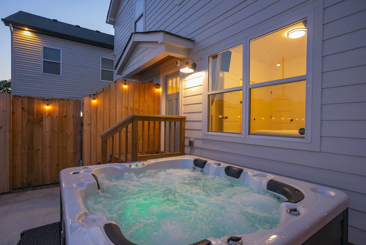 DAVIDSON COUNTYSTRP#2018075308 Notalegt í steinlögðum heita pottinum eða farðu í eftirmiðdagssund í lauginni. Fallegt sögulegt hverfi í East Nashville, meira en 50 matsölustaðir og barir í blokkum. Hægt að ganga að Broadway, Nissan-leikvanginum, Bridgestone Arena, árbakkanum og Ryman. Komdu og endurskapaðu koss Jessie og Deacon frá „Nashville“, 6. þáttaröð, á veröndinni þar sem hún var í raun tekin upp. Hafðu endilega samband til að fá aðstoð og við vonum að þú njótir dvalarinnar !
