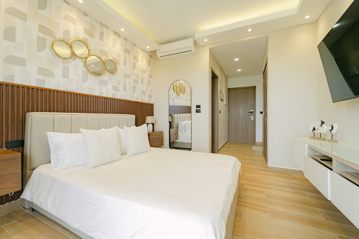 Njóttu nútímalegra og glæsilegra lúxussvítna í einkasvæði Central Park í miðborg Punta Cana. Aðeins 5 mínútur með bíl frá ströndinni og 12 mínútur frá flugvellinum, umkringd nálægum áhugaverðum stöðum í göngufæri: Coco Bongo, Hard Rock Café, vatnsgarðar eins og Dolphin Discovery og Caribbean Lake Park, auk veitingastaða, matvöruverslana og verslunarmiðstöðva. Fullkomið fyrir 5-stjörnu dvöl sem býður upp á lúxus, þægindi og óviðjafnanlega staðsetningu í líflega og örugga hjarta Punta Cana.