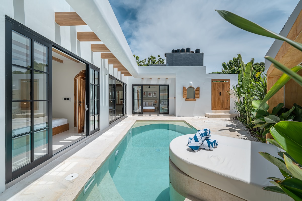 Verið velkomin í Villa No.7 Set á fullkomnum stað til að komast á ströndina og í nokkurra skrefa fjarlægð frá hjarta Seminyak. Húsið er mjög persónulegt og öruggt, staðsett á mjög rólegum stað í burtu frá Jl Sari Dewi í innan við 5 mínútna göngufjarlægð frá KeDuTa. Þessi fallega Villa var smíðuð fyrir 1 árs,er með 3 stór svefnherbergi og baðherbergi, einkasundlaug, rúmgóða opna / lokaða stofu með nægu plássi til að slaka á á þessum heitu bali dögum og nóttum.Villa er með fullbúið eldhús, Nespresso kaffi og þvottaþjónustu