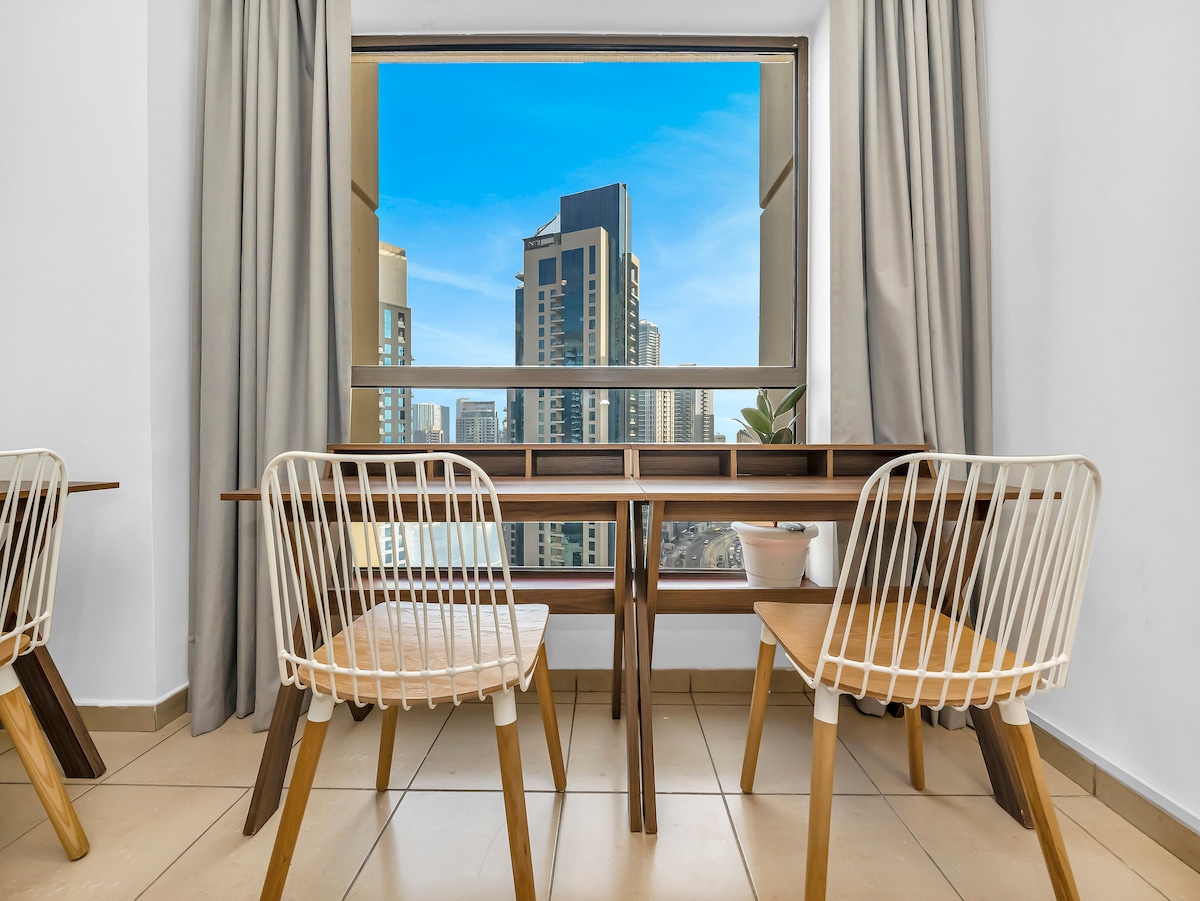 Stylish 1BR with Dubai Skyline & Burj Khalifa View