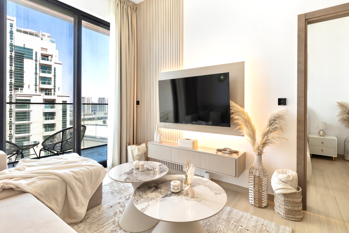 Unwind in this stylish and serene 1-bedroom apartment located in Jumeirah Village Circle. Designed with comfort and simplicity in mind, the space offers a clean, modern aesthetic with thoughtful touches throughout. Enjoy a bright, open living area, a fully equipped kitchen, and a private balcony perfect for morning coffee or evening relaxation. The apartment features 1.5 bathrooms, high-speed Wi-Fi, and a smart TV, making it ideal for couples, business travellers, or small families.