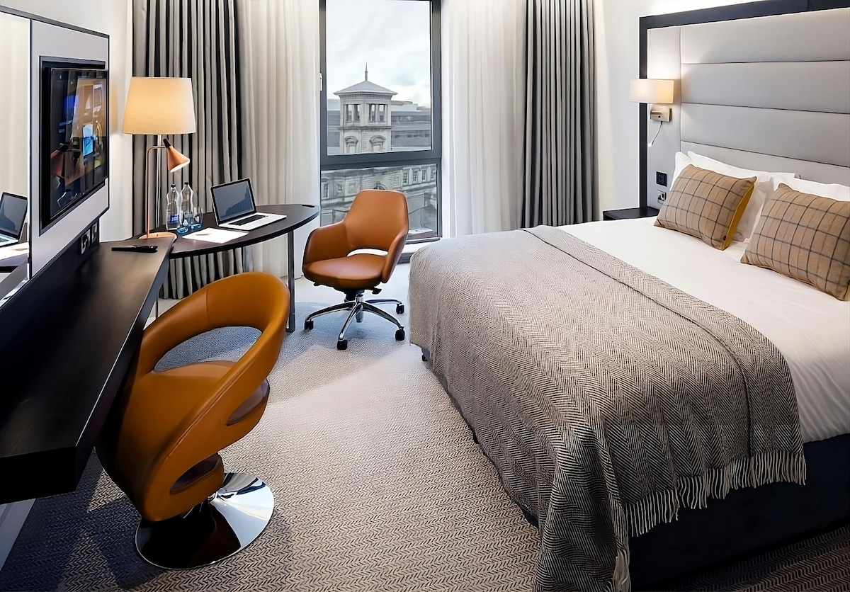Tvöföldu herbergin okkar eru rúmgóð valkostur fyrir ferðamenn með einu tvíbreiðu rúmi (4 feta og 6 tommu breið). Þrefaldir gluggar sjá til þess að öllum utanaðkomandi hávaða sé haldið í lágmarki. Öll herbergin eru með en-suite baðherbergi með baðkari, sturtu, salerni og vaski ásamt ókeypis snyrtivörum. Kaffi- og teaðstaða er í herberginu. Ókeypis þráðlaust net er á öllu hótelinu og í öllum herbergjum. Haltu öllum verðmætum þínum öruggum í öryggishólfi okkar. Sjónvarp með úrvali írskra rása er að finna í herberginu. Straujárn og strauborð og ís eru í boði gegn beiðni frá móttöku.