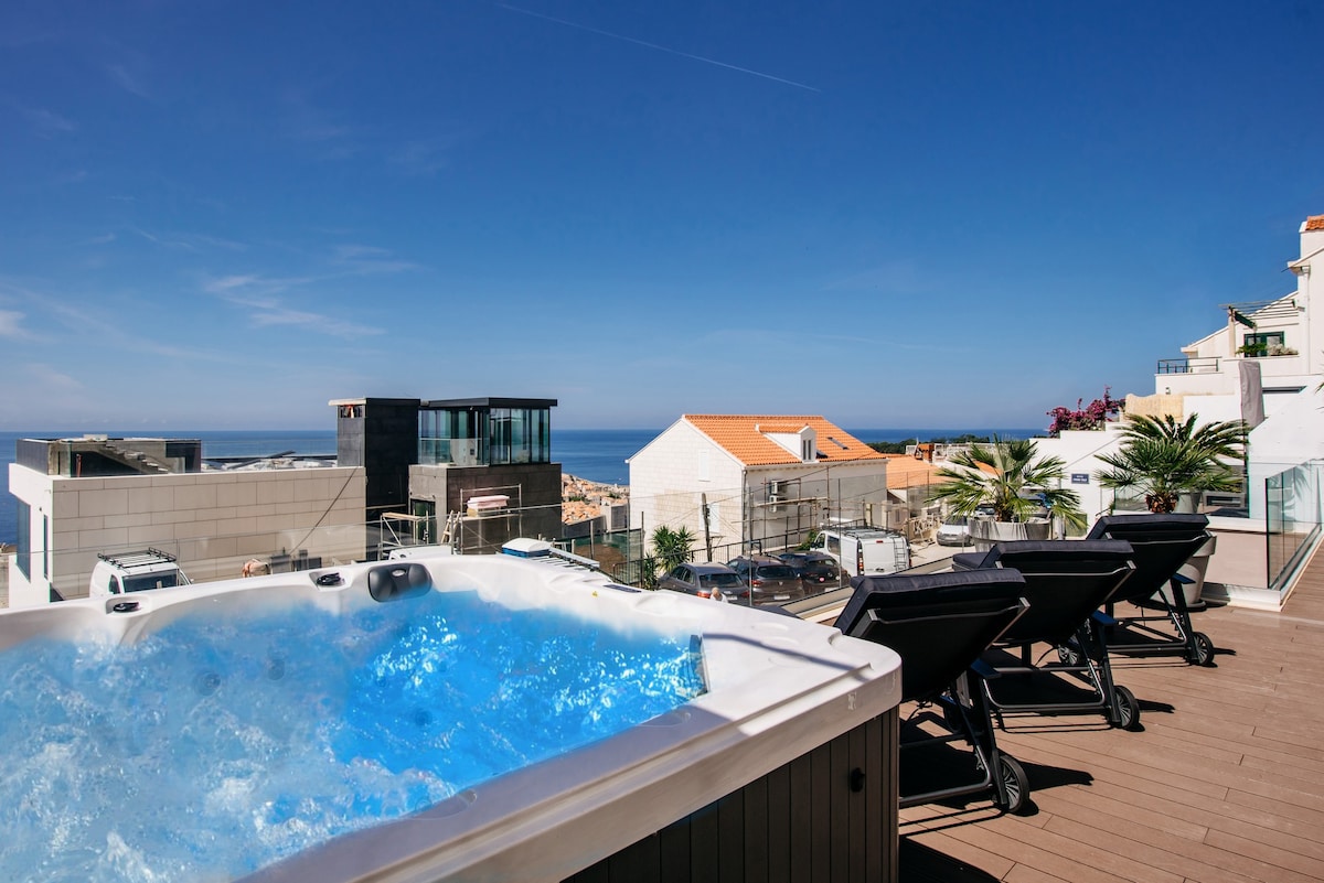 Verið velkomin í þetta einstaka orlofsheimili í Gruž, hljóðlátum hluta Dubrovnik með frábærum tengingum við gamla bæinn. Þessi tegund eignar er mjög sjaldgæf vegna stærðar, innihalds og staðsetningar. Í húsinu eru fjögur þægileg svefnherbergi, rúmgóð stofa með fullbúnu eldhúsi , verönd með nuddpotti norn býður upp á fullkominn stað til að slaka á. Húsið býður upp á litla líkamsræktarstöð fyrir gesti sem vilja vera virkir í fríinu.