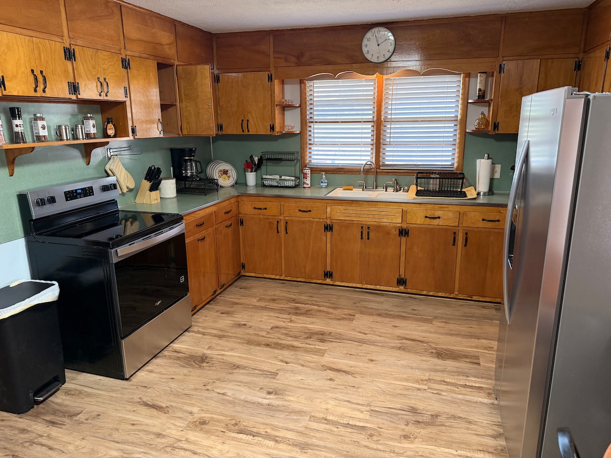 Nostalgía og þægindi í Mamaw 's House. Við erum að heiðra mömmu okkar, ömmu, ömmu og mæður; deila hæfileikum sínum, áhugamálum og ást með þér. Allir eiga heima hjá Mamaw 's House. Fjölskyldusvæðin eru til skemmtunar, leikja og samtala. Setustofan, morgunverðarsvæðið, veröndin og „drulluherbergið“ gefa þér stað til að búa til eða slaka á. Öll svefnherbergin eru með vinnuaðstöðu, þægileg rúm, speglar í fullri stærð og háhraðanet. Komdu inn og vertu um stund.