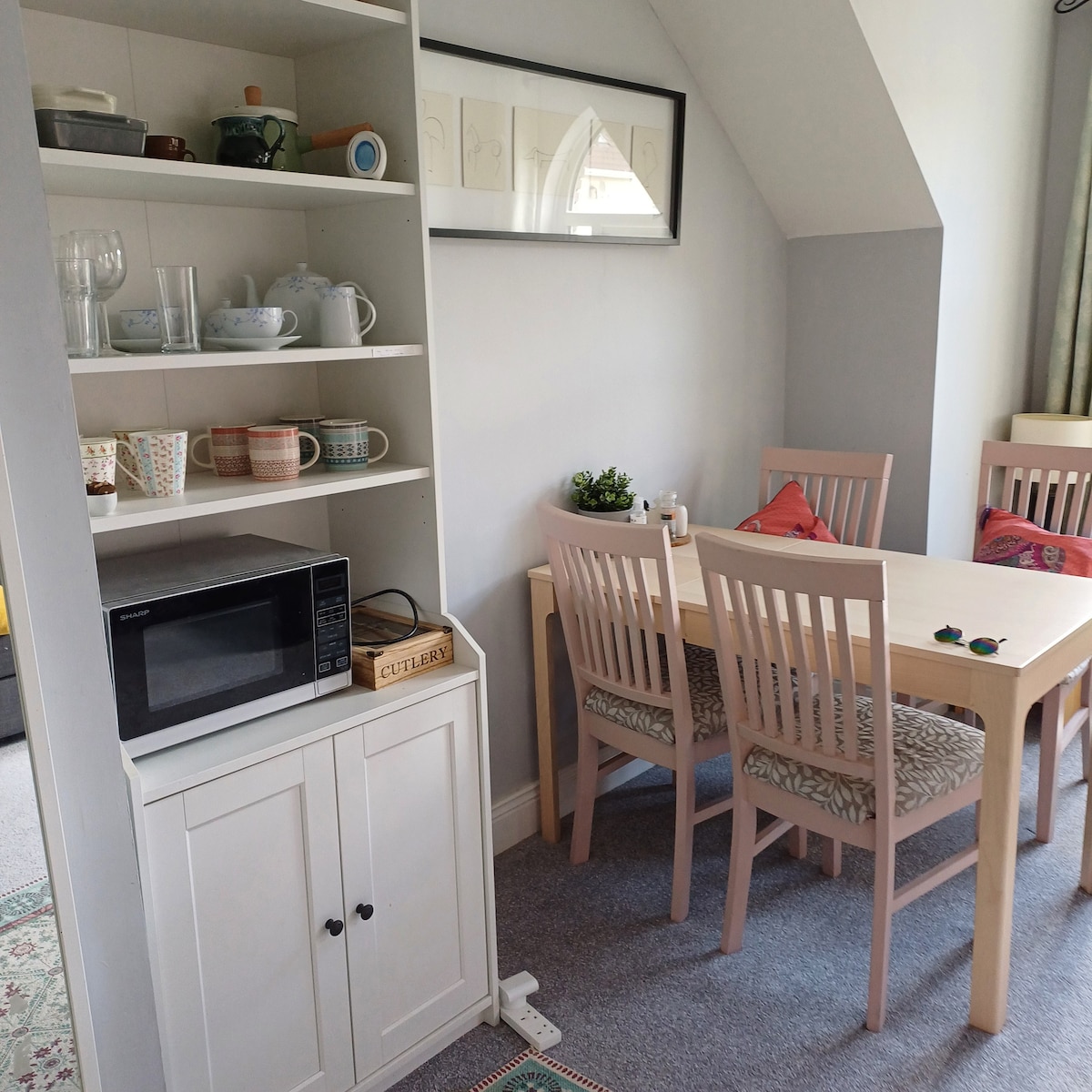 A great room which contains twin beds with it's own private toilet shower and seperate kitchen area. Guests also have their own private entrance. We are a short walk to beautiful Bray seafront with lots of great entertainment and music in the pubs. Good selection of restaurants and great walks. Only 35 mins to the city centre by train or 55 mins by bus.
