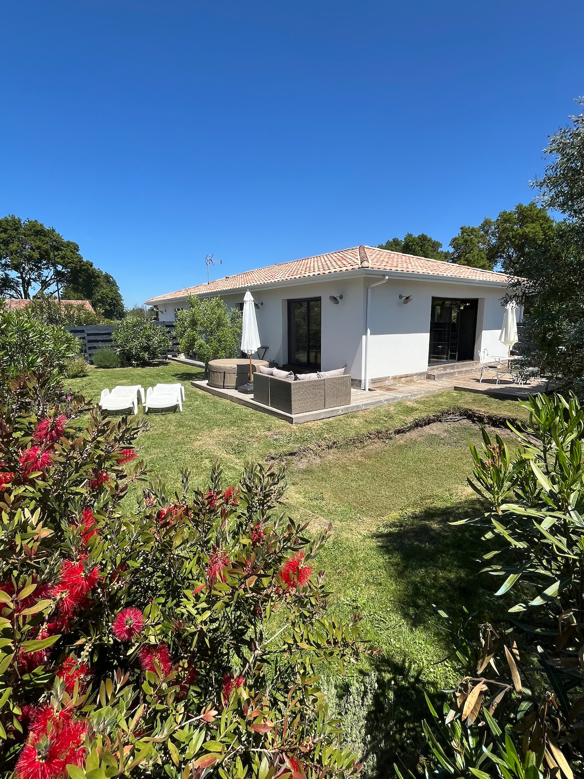 Pretty little house typical of the Basin located at the bottom of the garden of our property, with its independent entrance and outdoor parking. Hún er staðsett í 15 mínútna fjarlægð frá ströndum sjávar, í 10 mínútna fjarlægð frá Dune du Pyla og Arcachon og nálægt miðborg La Teste. Það er 32 m2 að stærð og er með verönd. 3 stjörnur í einkunn Það er þægilegt og vel búið fyrir ánægjulega og rólega dvöl. Þessi eign hentar ekki fyrir fólk með takmarkaða hreyfigetu.
