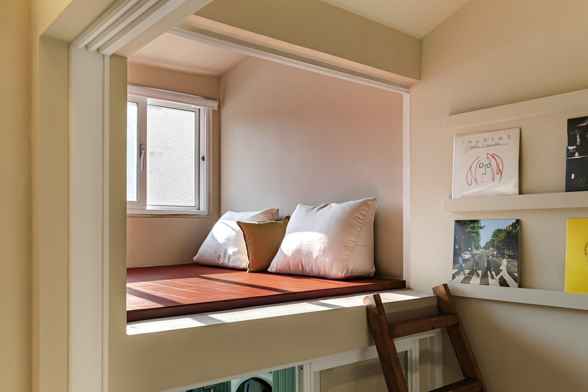 "NORMAL THINGS" are against the normality of daily. I want to provide a comfortable unfamiliarity through this place filled with ordinary things that can be easily seen in everyday life. During the day, feel the cool breeze and warm sunlight coming through the big window. in the evening, relax listening to your favorite music. Check in: 3 pm Check out: 11 am Recommend a reservation for 2 people. (Double bed room setting, 2 beds not available) 3 people: Bedding set on sofa bed in small room