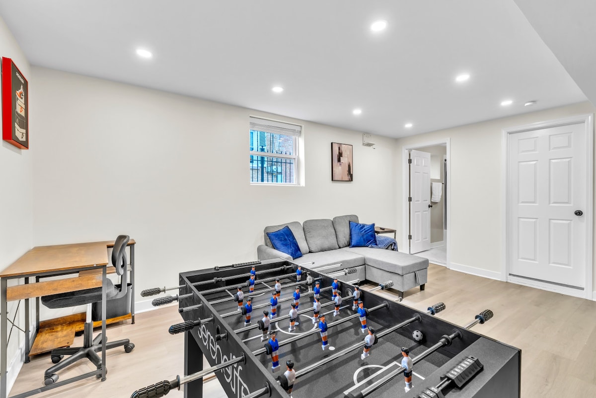 Rúmgott opið hugmyndaheimili með leikjaherbergi + eldstæði