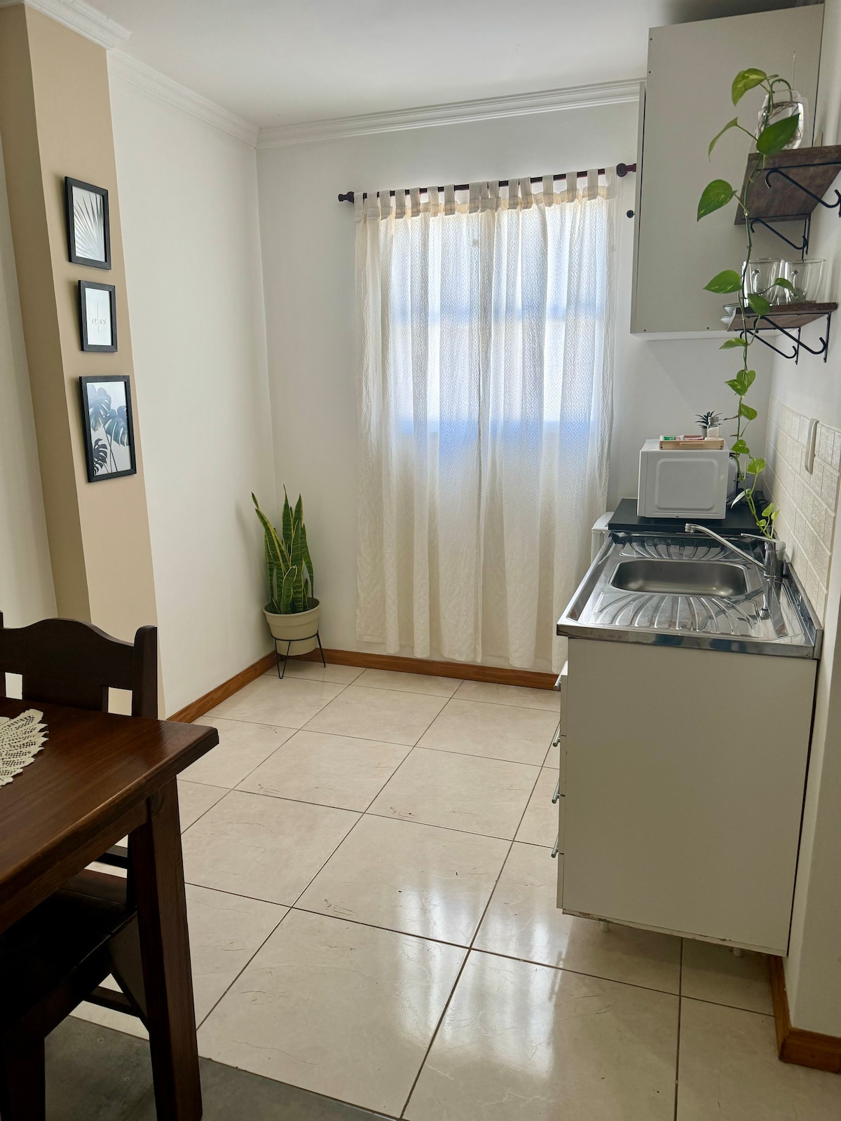Íbúð á 3. hæð í byggingu sem er staðsett inni í miðhjálminum og hægt er að komast að henni með tröppum. Hér er herbergi með þægilegri rúmgóðri rúmgrind, teppi í boði og rúmföt með þægindum . Stofa, sjónvarp með Netflix-verkvangi Svalir með grilli Þar er að finna maxi kiosco, bakarí og apótek, vinotecas. Fullur stórmarkaður er að ganga tvær húsaraðir í 5 mínútur. Strætisvagnastöðin er í 5 húsaraða fjarlægð.