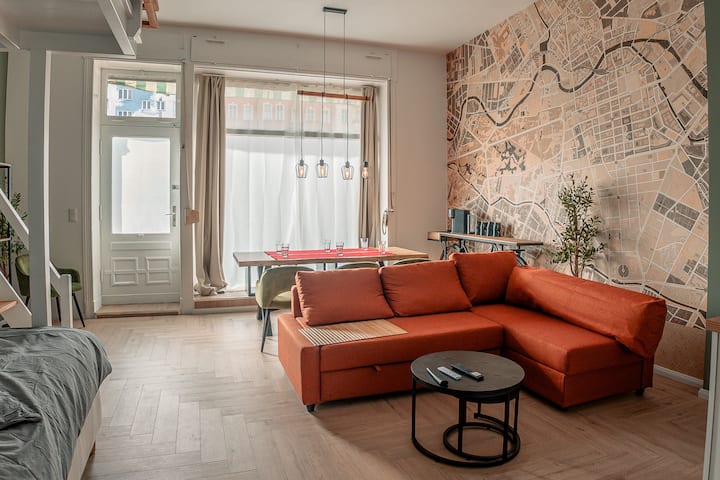 Exclusive to Airbnb guests, relax in our lounge: a playful spot to unwind, freshen up and recharge.