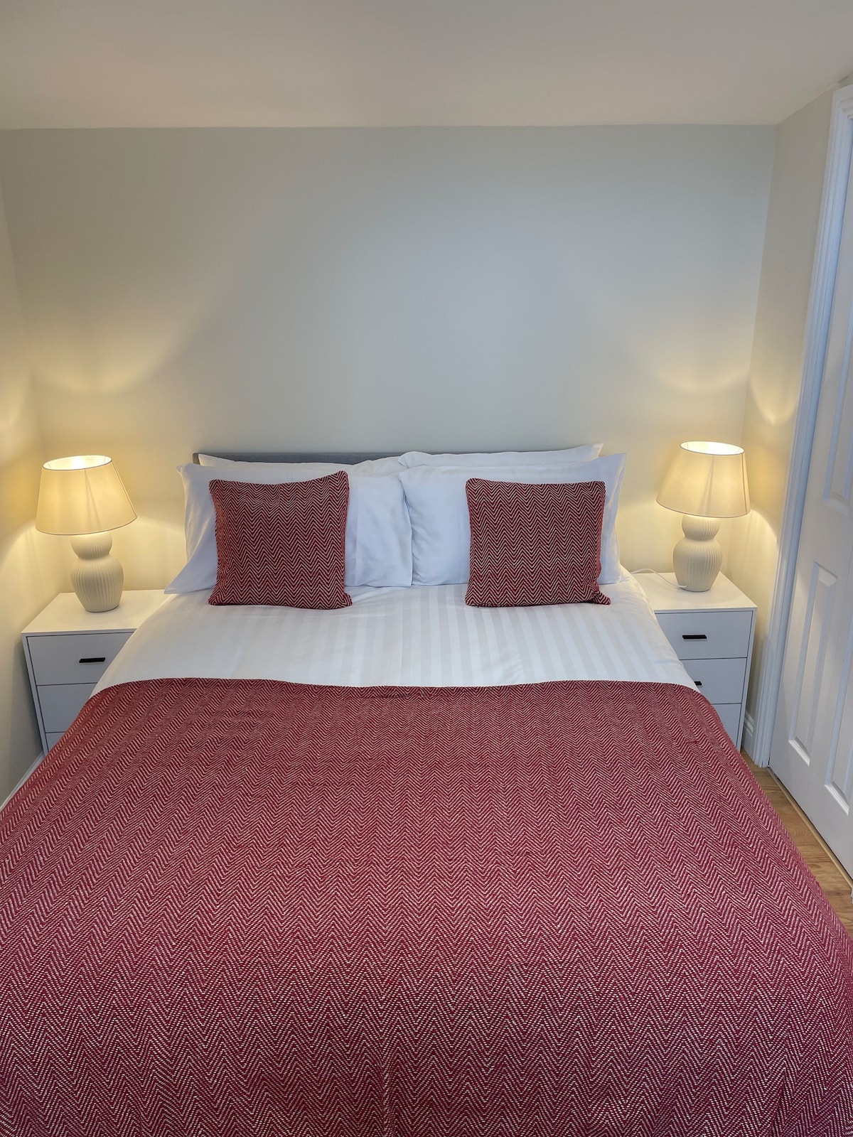 Notalega, bjarta og rúmgóða nútímalega eignin okkar er með fullbúnu eldhúsi með borðstofuborði, stóru svefnherbergi í king-stærð með tvíbreiðu rúmi og baðherbergi með kraftsturtu, setusvæði með töfrandi útsýni í átt að Quiraing með útihurðum sem liggja út á pall. Útsýnið hjá okkur er alveg sérstakt. Við búum í virkilega fallegum og hljóðlátum hluta Skye