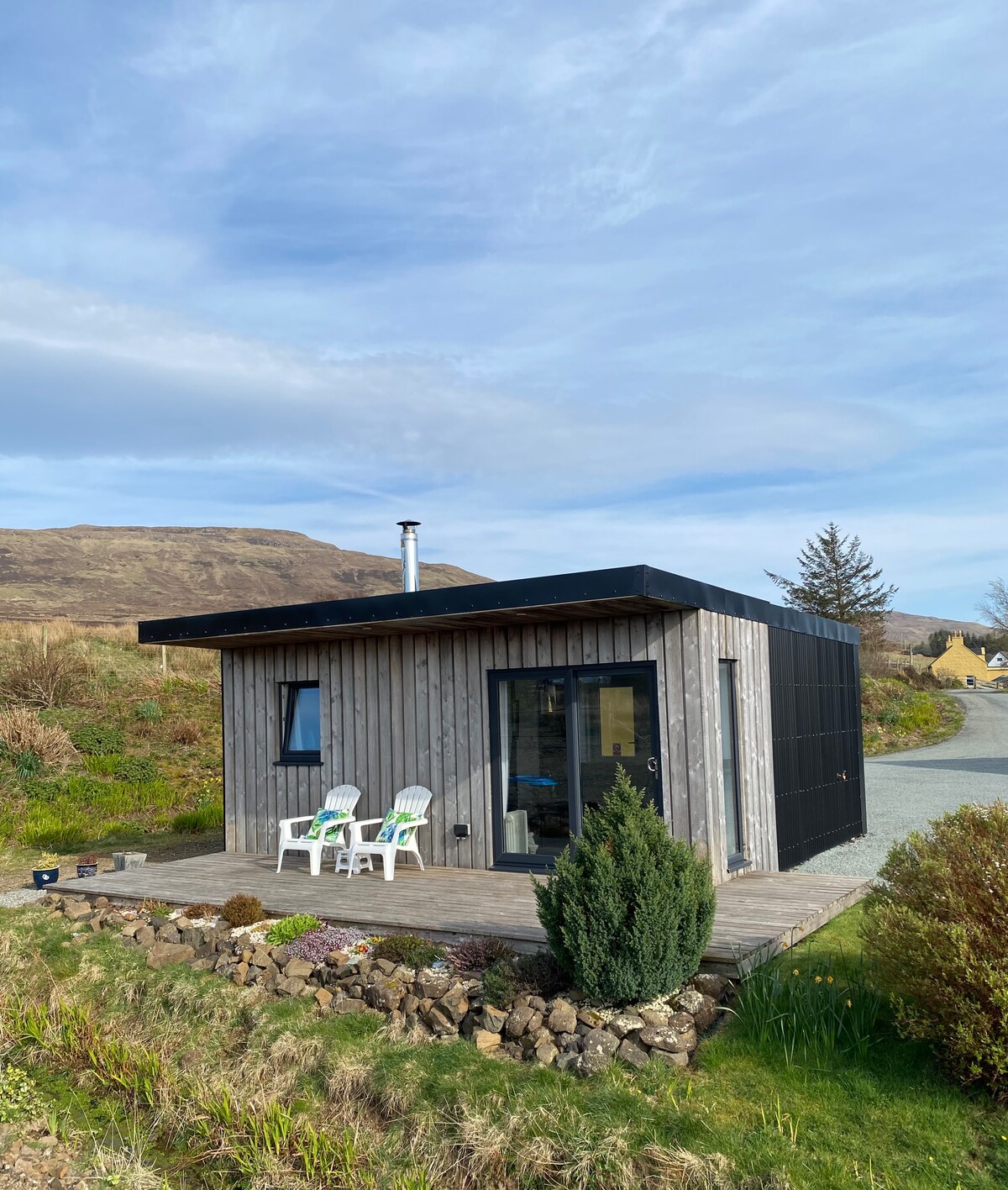 Avalon Chalet er byggður og er nútímalegur skáli með eldunaraðstöðu. Staðsett í fallega þorpinu Borve, aðeins 8 km frá Portree, þar sem finna má úrval verslana, kráa, kaffihúsa og veitingastaða. Tilvalin kyrrlát staðsetning fyrir dagsferðir um Skye. Fallegt útsýni og sólsetur. Aðeins 20 mínútur frá Uig Ferry terminal Næg bílastæði Wi fi Í apríl / maí er nóg af sætum ungbörnum á króknum.