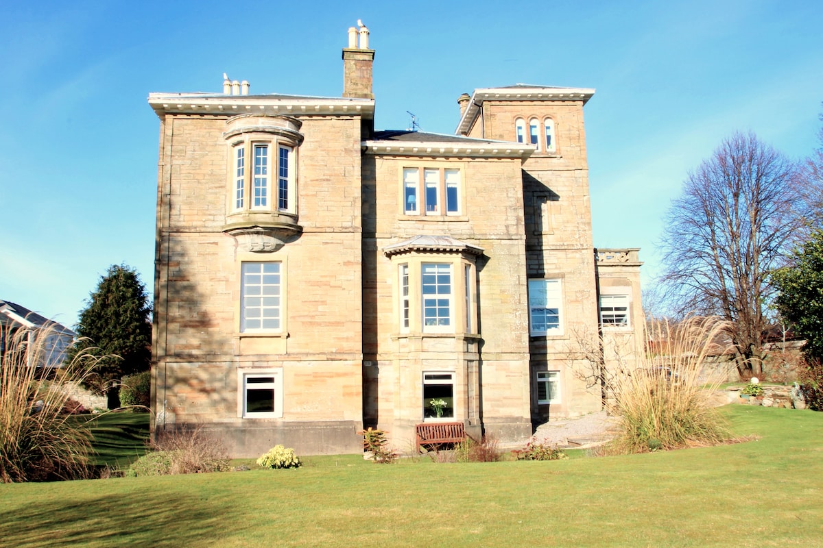 Ekkert þjónustugjald Air BnB greiðist af gestum okkar! Glæsileg tveggja svefnherbergja hefðbundin íbúð á 2. hæð í 19. aldar ljósri sandsteinsbyggingu í strandbænum Ayr, í hjarta lands Burns! Inverdon er kyrrlátt og fjölskylduvænt ívafi (Engar veislur takk) með mögnuðu útsýni yfir Belleisle-golfvöllinn. Inverdon er í innan við nokkurra mínútna göngufjarlægð frá fallegum ströndum Ayr, almenningsgörðum og golfvöllum, veitingastöðum og börum og engu að síður kyrrlátt umhverfi á eigin svæði.