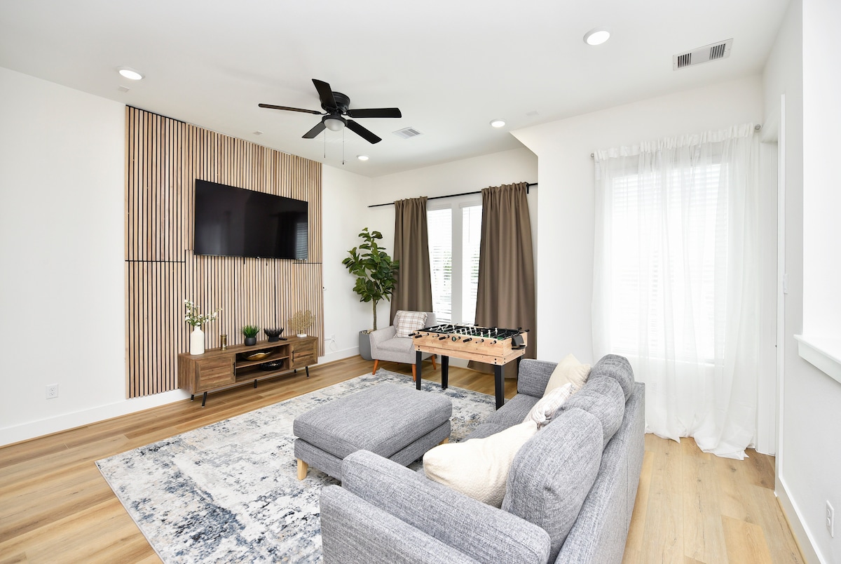 Embrace luxury in our 'Midtown Gem', a 3BR/3.5BA stylish home located in the vibrant heart of midtown Houston. This spacious property features a home gym and a rooftop terrace with breathtaking Houston skyline views. Within walking distance to top restaurants and a short bike ride from eclectic bars, it offers the perfect blend of relaxation and city exploration. Ideal for those seeking an upscale urban retreat, enjoy modern comforts and easy access to Houston's dynamic downtown area.