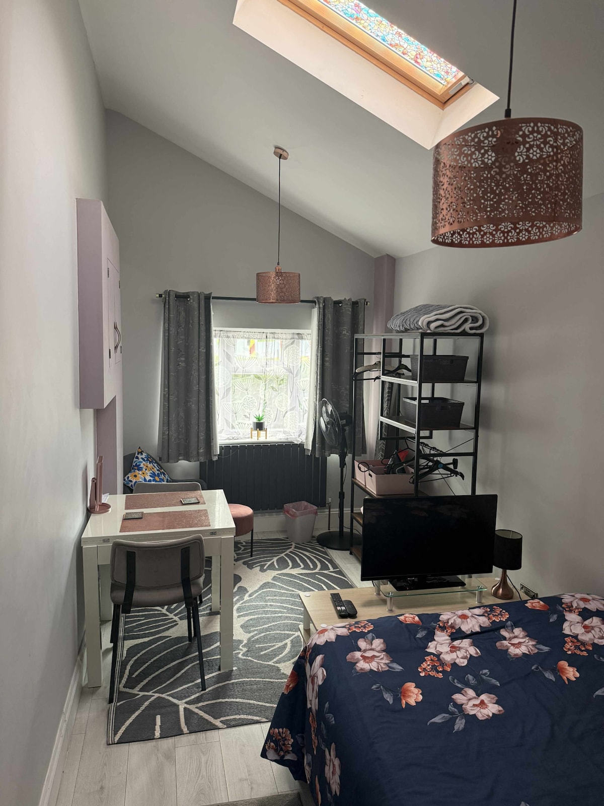 Viðbyggingin er innréttuð í háum gæðaflokki. í henni er eldhúskrókur og sturtuklefi Rúmherbergið er með hjónarúmi, kapalsjónvarpi og interneti, þar er einnig lítið borð og stólar sem nægir til að borða eða nota sem vinnuaðstöðu The annex very near the station about a 2 minute walk. with really good link to London, Stanstead or Cambridge. Það eru einnig staðbundin High St með litlum matvörubúð, veitingastöðum og takeaways. Við erum einnig í göngufæri frá Superstores og kvikmyndahúsi.
