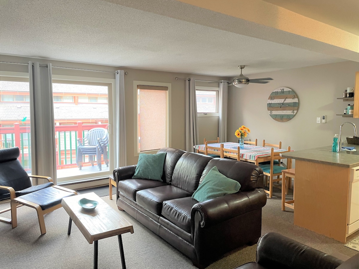 Our condo with a walk-out patio is located in one of Canmore's top resorts. We have access to the resorts year-round heated pool, hot tub & fitness centre. We provide a fully appointed kitchen so you have everything you need to cook all your meals from home. With a brand-new king -sized mattress, you will get the beauty rest you deserve. We are a 15minute walk to beautiful downtown Canmore via Spring Creek, don’t forget to grab a coffee at the Black Dog Café to start your adventure off right!