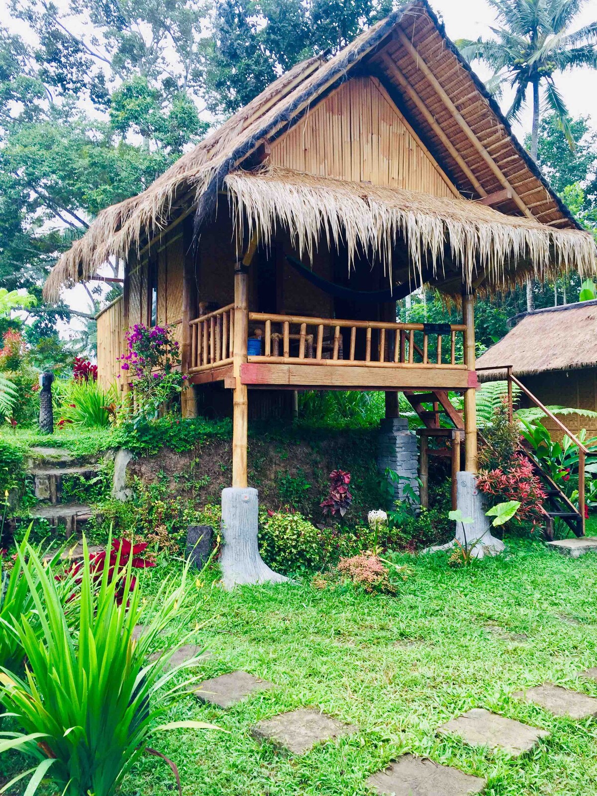 Finndu Jungle Inn við enda lófatrésvegar með fossi og frumskóginum rétt fyrir aftan hitabeltisgarðinn og ricefield. Þú munt strax finna Tetebatu frumskógarstemninguna. Skálarnir eru byggðir af mér og eru með yfirgripsmikið útsýni fyrir stjörnuskoðun og sólsetur. Á morgnana bjóðum við þér upp á ókeypis morgunverð. Eftir heilan dag af afþreyingu er hægt að vinda ofan af þér í hengirúminu við eld eða slappað af á barnum þar sem við spilum tónlist, pílukast og bjóðum upp á kaldan bjór. Láttu þér líða eins og heima hjá þér!