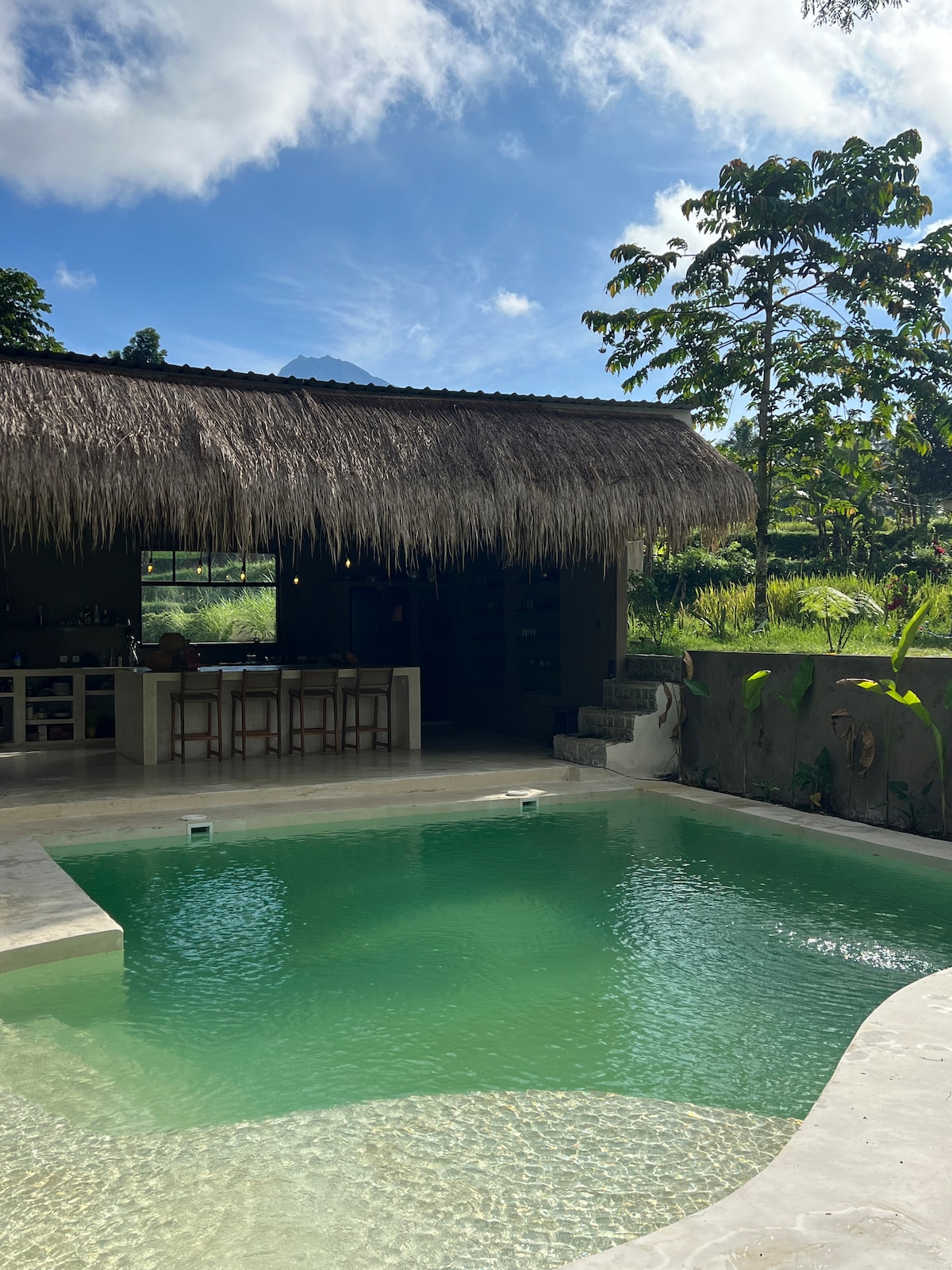Einstök staðsetning í þjóðgarðinum, víðáttumikið útsýni yfir hrísgrjónaveröndina að Kyrrahafinu, hátt uppi í fjallinu að toppi Mt.Rinjani, endurhladdu innri kraftana með náttúrulegri sundlaug. Paradísin til hvíldar og afslöppunar. Himnaríki fyrir líkama og sál og samt lítið ævintýri. Gakktu um hitabeltisskóga hrísgrjónaveröndina, að fossunum. Á veitingastaðnum okkar spillum við gestum okkar með góðum morgunverði í indónesískum og evrópskum stíl með hálfgerðum hitabeltisávöxtum.