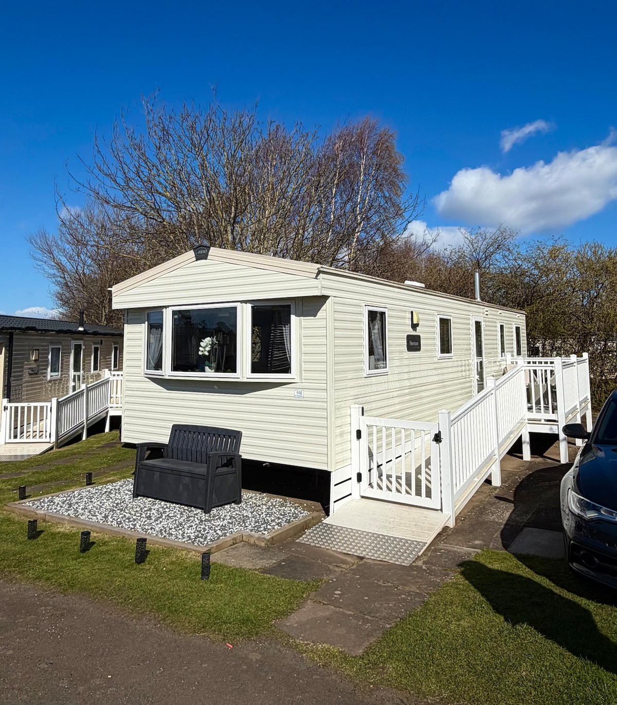 Our family happy place is a cosy, 2 bedroom (sleeps 6), Willerby Parkland Retreat static caravan at Seton Sands Holiday Village in beautiful East Lothian. We are surrounded by nature, located in close proximity to the end of a quiet cul de sac a couple of minutes walk from the park’s walking trails but only a 5 minute stroll from the on site entertainment complex, activity areas and swimming pools.
