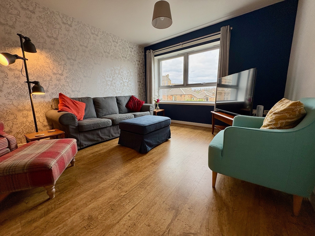 Notalegt heimili í Southside í Glasgow. Björt stofa og alvöru eldhús með borðstofu svo auðvelt sé að elda heima. Þægilegt svefnherbergi með rúmi í king-stærð, hágæðalín og góð geymslu. Fjölskylduvæn með ferðarúmi og barnastól. Þvottavél/þurrkari fyrir lengri dvöl ásamt snjallsjónvarpi og kaffivél. Laufskrýdd götu nálægt Linn Park, kaffihúsum og verslunum, með fljótum lestir- og rútutengingum við miðborgina. Hreint, vel búið og auðvelt að koma sér fyrir.