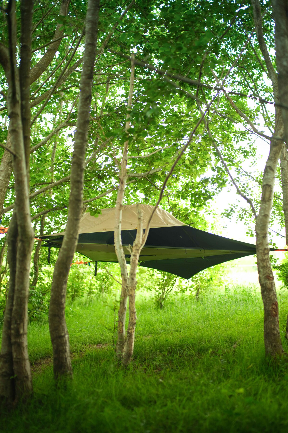 Flying tent in rewilded Wealden woodland