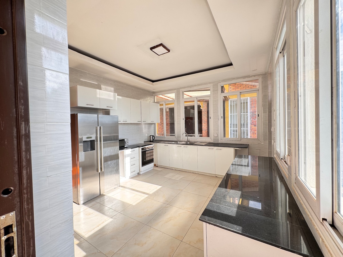 Upplifðu nútímalegan glæsileika í hinu virta Kigali hverfi Kigali. Þetta sólríka húsnæði er meira en 2.000 m² að stærð og býður upp á 4 svefnherbergi, 4 baðherbergi og margar vistarverur, þar á meðal rúmgóða opna tveggja manna stofu, fjölbreytta aukasetustofu/skrifstofu og víðáttumikið eldhús með borðstofu. The master suite is a private duplex retreat with separate sleeping and lounge areas. Nútímaleg þægindi eru loftkæling, ótrúleg útivist, næg bílastæði, fjölbýli fyrir starfsfólk