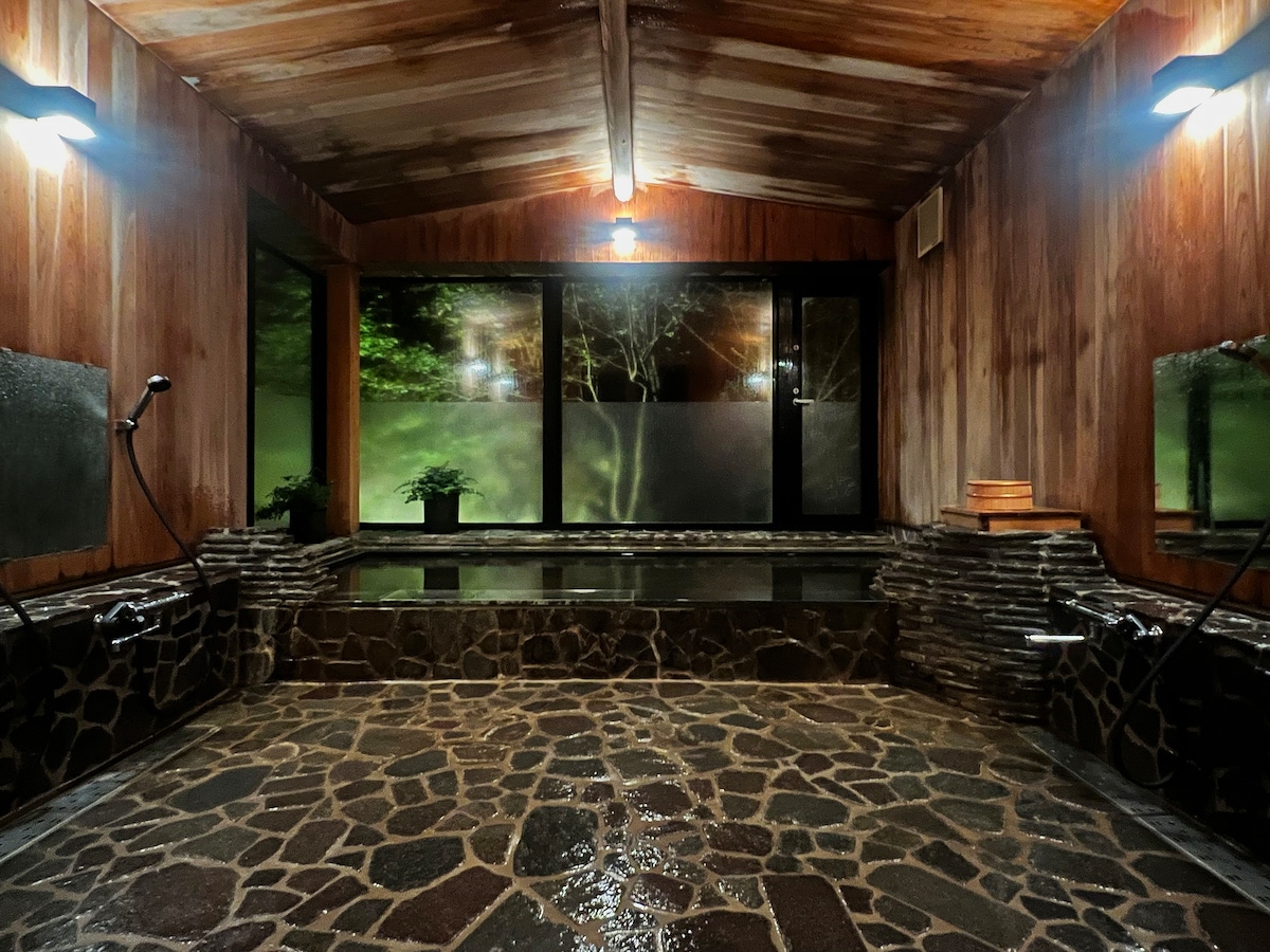 Öll byggingin sem einkavilla fyrir öll 1000 ㎡ í 7 rýmum. Allur „Rock Forest“ er með sjö meginhugtök. Við munum veita þér hverja "leið til að eyða". Eftir að þú hefur fengið ferskt hráefni á staðnum skaltu fara í Rock Forest, leggja bílnum á bílastæðinu og klifra upp stigann til að bera innihaldsefnin í eldstæðið. Ég fæ ekki að hitta annað fólk. Frá Tókýó til Karuizawa er 60 mínútur með Shinkansen og 30 mínútur með bíl frá Karuizawa stöðinni, svo þú getur til dæmis unnið á morgnana og tekið hálfan eftirmiðdag. Vinsamlegast eyddu afslappandi og óvenjulegum degi umkringd náttúrunni. < Vetrartímabil nóvember-mars > Yfir vetrartímann er heita lindin lokuð utandyra.
