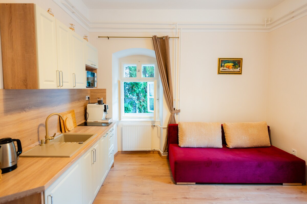 Við hliðina á Eger-kastala. Vegna staðsetningar gistiaðstöðunnar er auðvelt að ganga í hinn vel þekkta barokk í miðbænum. Í íbúðarhúsi í Orint, á kastalasvæðinu, eru 5 þægilegar og vel útbúnar íbúðir og herbergi með baðherbergi. Við getum tekið vel á móti 16 manns. Í hverri íbúð er sérbaðherbergi og eldhúskrókur, loftkæling og LCD-sjónvarp.