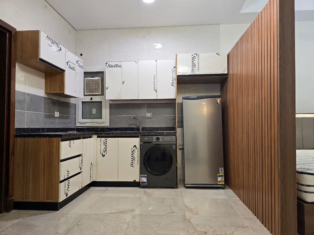 Lúxus stúdíóíbúð til leigu í Marina Village, North Coast, fyrir framan Al-Alamein Marina, Gate 5, með rúmgóðu og þægilegu svæði sem rúmar í mesta lagi 2 eða 3 manns. Íbúðin er með sérbaðherbergi með miðlægri loftræstingu sem veitir þér fullkomna þægindi. Einn af kostunum er að vera með sundlaugar til að njóta kyrrðar og einkennandi tíma auk þess sem auðvelt er að komast inn og út að og frá dvalarstaðnum. Við ábyrgjumst mikið hreinlæti og rólegan og notalegan stað. Staðsetning íbúðarinnar er nálægt allri þjónustu og mikilvægum ferðamannastöðum. Stúdíóið er svo nálægt hliðinu Svo nálægt Marina Alamein
